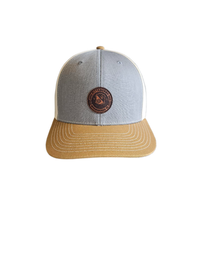 Leather Patch Hat - Blue/Beige/Brown