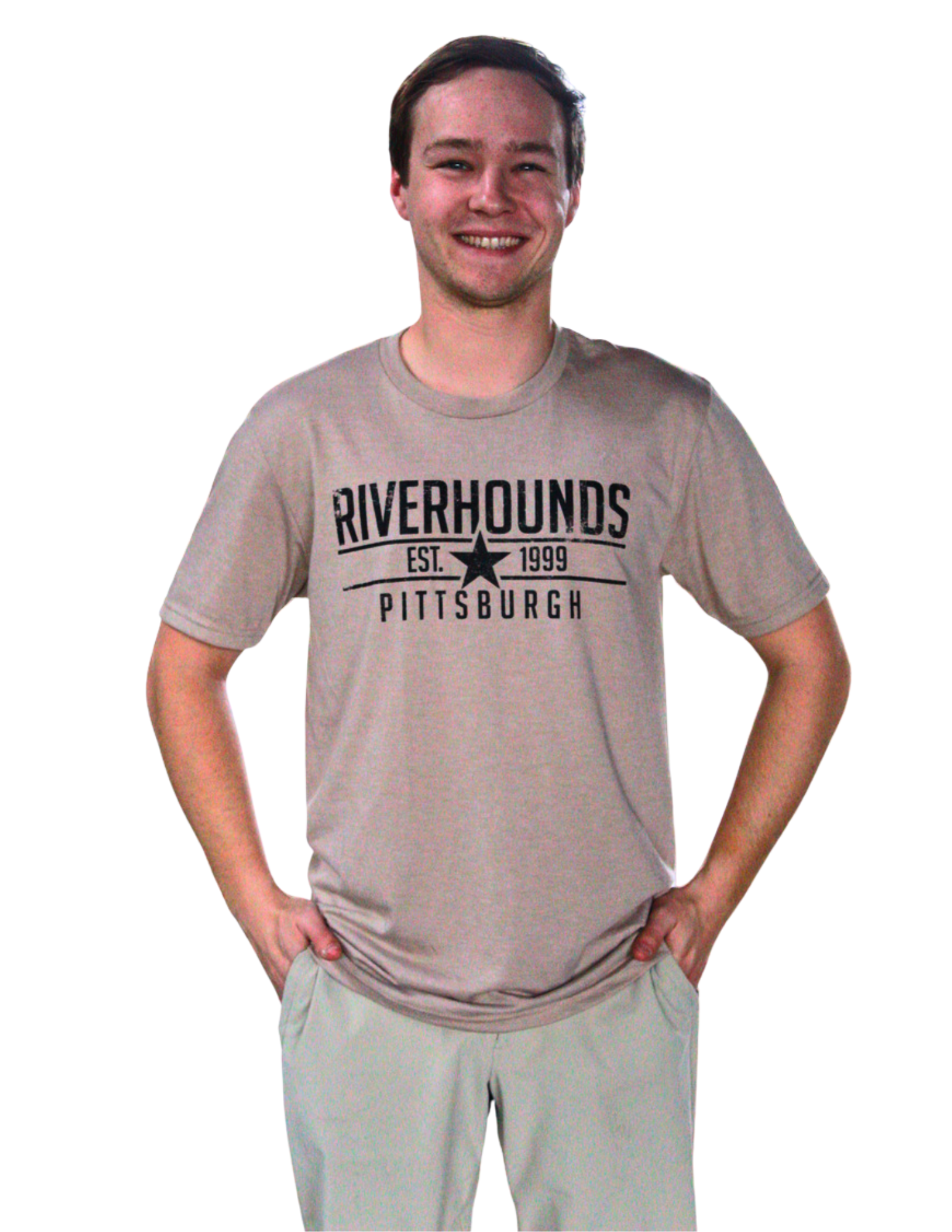 This amazing t-shirt is part of our 2 piece Deadwood Collection. It is composed on a Tri-Blend t-shirt from our partners at District. Featuring a western Riverhounds design on an oatmeal t-shirt, this piece compliments our Deadwood Camo Hoodie (picture below). Available in S-3X in Unisex sizing, you will be standing out in this t-shirt!